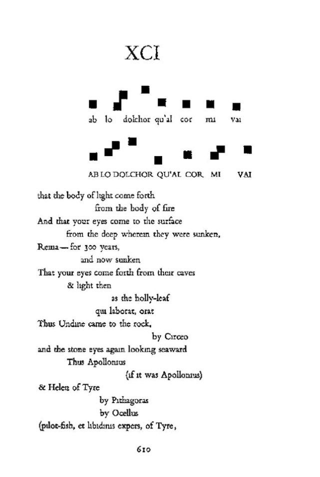 Ezra Paund, THE CANTOS. Na prvi pogled debela modernistička poema od ~700 stranica, ali zapravo žanrovski nedredivo i vrhunski složeno delo, možda jedno od najsloženijih i najtajanstvenijih u modernoj književnosti, uz primere poput FINEGANOVOG BDENJA Dž. Džojsa.