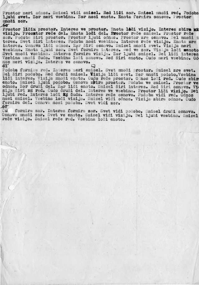Пре Мирољуба Тодоровића, словеначки аутор Марко Погачник, оснивач у Југославији врло утицајне неоавангардне групе ОХО, саставио је пројекат BRESKEV (1969), са поднасловом „Програмирани теоретични текст“.