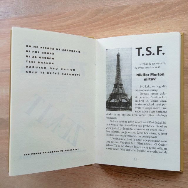 Дела су изашла из штампе негде у децембру. О њима до сада ништа нисам говорио јер сам вероватно и даље мртав уморан од посла. Сенка Влаховић & ја смо већи део лета 2022. радили на припреми, уређивању и техничкој опреми; до краја августа ми екран није излазио из сплит скрина на којем је улево био скен изворне књиге из хиљаду деветсто двадесет и неке, а удесно најновији .doc или ПДФ. Сенка & ја смо на телефону били више него са родбином. Зенитисти припадају току европских авангардиста који су претходници данашњег индустријског и типографског дизајна, тако да није редак случај да у само једном делу, попут 77 САМОУБИЦА Б. В. Пољанског или МАНИФЕСТА ЗЕНИТИЗМА Љ. Мицића, имате неколико различитих слогова, фонтова, фонтовских величина и сличних типографских заврзлама које су део природе и поетике дела као и сам садржај или тема. Цела ствар је морала бити испоштована у потпуности приликом репринта, иначе подухват није био ни за шта; објављивати зенитисте без емулирања сваке њихове визуелне заврзламе било би као штампати ГОРСКИ ВИЈЕНАЦ у прозним пасусима.
