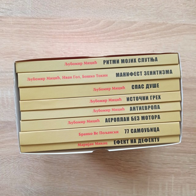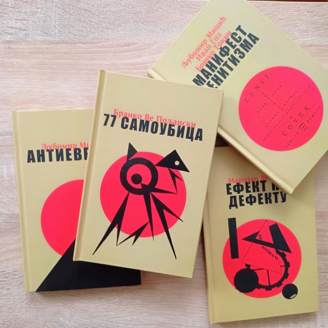 Дела су изашла из штампе негде у децембру. О њима до сада ништа нисам говорио јер сам вероватно и даље мртав уморан од посла. Сенка Влаховић & ја смо већи део лета 2022. радили на припреми, уређивању и техничкој опреми; до краја августа ми екран није излазио из сплит скрина на којем је улево био скен изворне књиге из хиљаду деветсто двадесет и неке, а удесно најновији .doc или ПДФ. Сенка & ја смо на телефону били више него са родбином. Зенитисти припадају току европских авангардиста који су претходници данашњег индустријског и типографског дизајна, тако да није редак случај да у само једном делу, попут 77 САМОУБИЦА Б. В. Пољанског или МАНИФЕСТА ЗЕНИТИЗМА Љ. Мицића, имате неколико различитих слогова, фонтова, фонтовских величина и сличних типографских заврзлама које су део природе и поетике дела као и сам садржај или тема. Цела ствар је морала бити испоштована у потпуности приликом репринта, иначе подухват није био ни за шта; објављивати зенитисте без емулирања сваке њихове визуелне заврзламе било би као штампати ГОРСКИ ВИЈЕНАЦ у прозним пасусима.