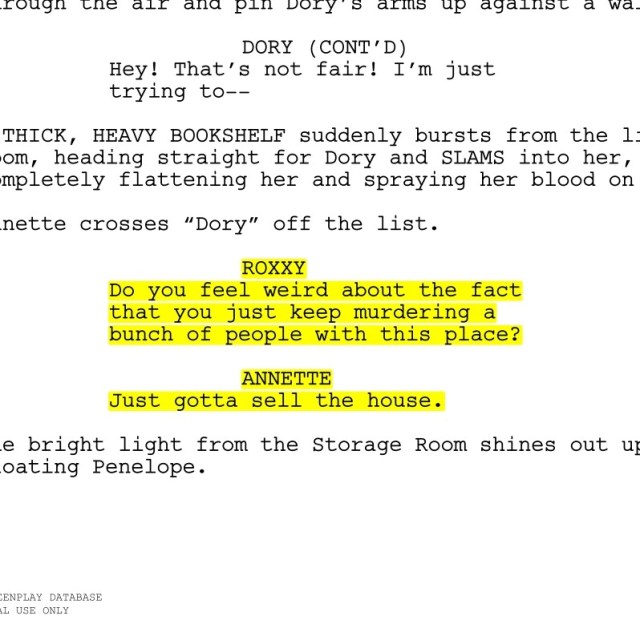 Холивудске филмске сценарије волим да читам не само због менталне игрице замишљања филма у глави пре него што га погледам, већ и због тога што благе везе немам како се такво штиво заправо пише, па ме свакакве ситнице одушевљавају до бесвести. Фасциниран сам, на пример, прозним записима у акцијским линијама који нису стриктно визуелна упутства & који нису „show don’t tell“ — који су, дакле, чиста проза. Паралелна прича у МЕНИЈУ, поред лудила кувара Словика, јесте брачни однос Марго и њеног супруга Крега. Нема у њиховим проблемима велике мелодраме, и прича је болна баш зато што је лишена драматичности. Они нису брачни пар који се удаљава једно од другог; проблем је што су се већ удаљили. Обоје очајнички покушавају да се приближе, стварно то желе, али даљина је сада превелика. Једна акцијска линија тако упућује Марго да гледа у Крега, али наредних неколико реченица су писане техником тзв. доживљеног говора, прозним фазоном преклапања првог и трећег лица: „Марго посматра свог мужа. Видимо да и даље осећа наклоност према овом мушкарцу. Али поштовање? Привлачност?“. У реду, питања су упуства за глумицу, али сувише су ове реченице сјајне да би тавориле у сценарију којег, осим филмске екипе и понеког залуђеника, нико неће прочитати.